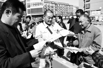 在活动现场,便民服务队为市民发放宣传材料。本报记者 张晓科 摄