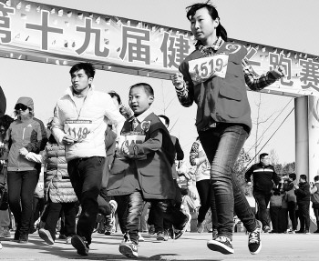 ①②③④ 22日,“烟台市第十九届万人长跑”活动在福山区鸣枪起跑,参与的市民中有60岁的老人,也有七八岁的小孩。
