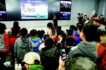 聊城市气象局指挥大厅内,气象专家正在给小记者和家长们讲解气象知识。