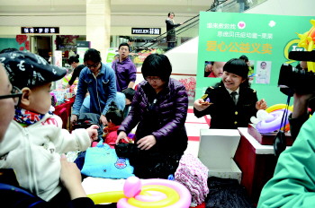 21日上午,交运温馨巴士公司的员工在新业广场现场制作气球玩具售卖,为身患庞贝症的九个月大女童果果募捐。此次活动共得到捐款3813.4元,并在当天中午全部转账给即将赶往外地治疗的果果一家。