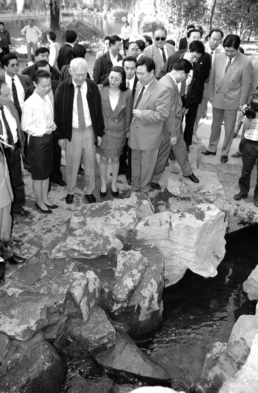 1994年10月2日,李光耀游五龙潭。 侯贺良 摄