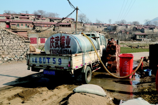 章丘市正在给出现临时饮水困难的村民送水。 通讯员 刘春明 摄