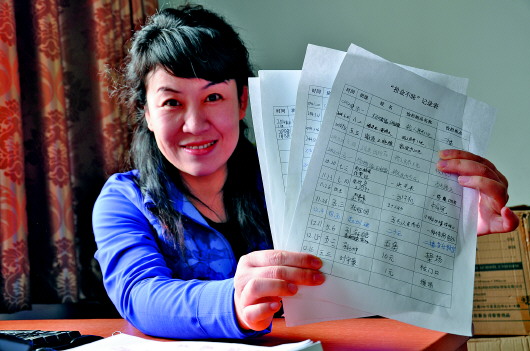作为一名老师,于萍不仅以身作则,在学校里她也是如此教育学生。在她的办公室里,记者发现了一本“拾金不昧”记录表,上面详细记录着从2014年3月份一直到2015年1月份,学生捡拾物品并上交的明细。