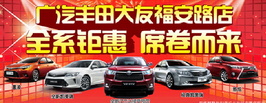 3月27-29日,大友福安路店携广汽丰田全系车型钜惠席卷章丘春季车展,全新凯美瑞、凯美瑞经典、致炫、雷凌、汉兰达每天一台特价车等你抢,见面礼、订车礼双重礼遇拿到您手软!