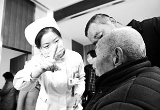 19日,由任城区残联组织的“迎春送光明”免费白内障复明手术活动,在济宁同仁眼科医院举行。在现场,任城区内的众多白内障患者得到救治。 本报记者 李岩松 通讯员 李静 摄