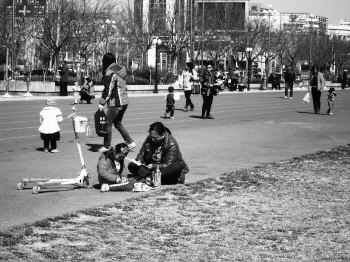 经历了短暂的降温之后,气温迅速回升,3月23日,市区最高气温达到17℃,不少市民带着孩子外出游玩,享受春光。