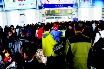 眼下,春运虽然已经结束多日,但德州火车站出行的客流依然明显高于日常出行人数。3月23日上午,乘客在候车室排队等候。 本报记者 马志勇 摄
