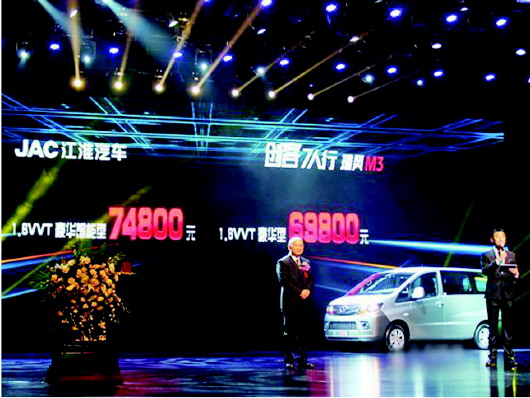 3月18日江淮旗下首款小型MPV瑞风M3于山东潍坊大剧院举行新车揭幕全国首发仪式,