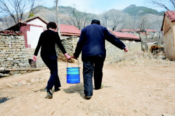 北场村村民从深水井里打水。 本报记者 王鸿哲 摄