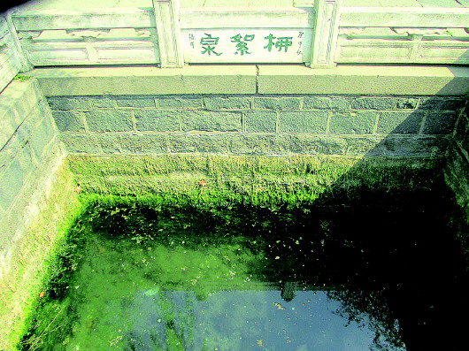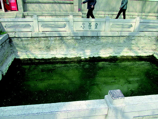 柳絮泉接近干涸,青苔长满半池。 本报记者 蒋龙龙 摄