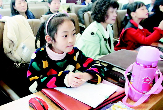 21日上午,本报资深美编牛长婧上了题为“教你如何做班报”的课,这也是校园小记者的首期公开课,小记者听得聚精会神。
