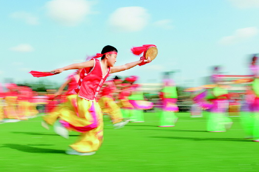 跑秧歌是全商河人的事,商河的很多学校将跑秧歌列入日常课程,第一实验小学、殷巷帽杨小学、孙集中学等的孩子跳得有板有眼,在他们身上我们看到了商河鼓子秧歌的未来。鲁北鼓子秧歌队的成员来自于各行各业,很多时候他们都是刻意推掉一些应酬聚会,牺牲掉陪伴家人的时间,聚在一起排练阵型,到处演出。他们的目标就是建立一支专业化、正规化的鼓子秧歌表演队,在他们身上,我们看见了对于鼓子秧歌的执着。