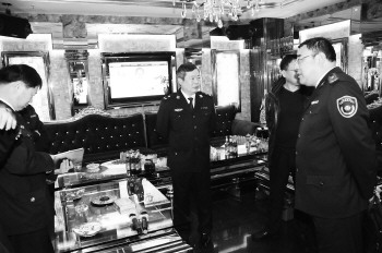 25日,在潍城区欢乐时光KTV,执法人员正在对其进行检查。