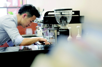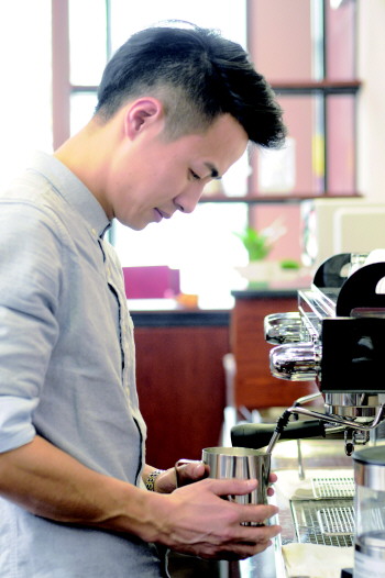 凤彬小心翼翼地整理着咖啡粉。