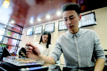 店里帅气的咖啡师名叫凤彬,今年26岁,一颗颗咖啡豆在经过精心筛选、焙烤后来到他的手中,现磨、填压、萃取、融合、拉花,一杯带有天鹅图案的精美咖啡制作完成。“4年前,那时的自己刚毕业正忙碌着找工作,一个下着小雨的夜晚,路过‘研磨时光’咖啡店,看着里面的‘老外’正悠闲地喝着咖啡,就想着在这里工作是多么幸福的一件事,从此当一名咖啡师的梦想就悄悄在心里发了芽。”凤彬告诉记者。