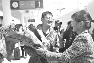 25日,赴济捐献造血干细胞的“仗义哥”宁青成功捐献后返回威海,受到威海市民的热烈欢迎。据了解,24日,宁青在济南军区总医院完成321毫升造血干细胞的采集,为一名白血病患者送去了生命的希望。