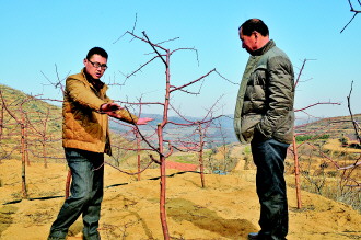 与村集体签订下110亩山地承包合同后,刘坤的“绿色银行”正式开户。修山路,拉电网,挖水塘,铺设1000多米的地下果树供水管道……完善了基础配套,刘坤又马不停蹄地考察苗木市场、联系苗木货源,并找到乳山果树站曹洪建站长,向其拜师学技。