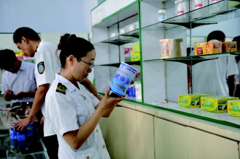 ◤市食品药品监管局执法人员对保健食品开展专项检查。 本报通讯员 朱海升 摄