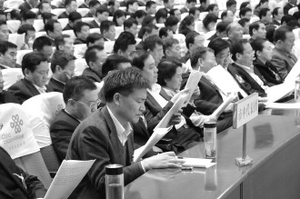 会上,与会代表仔细研究人大常委会工作报告。 本报记者 袁鹏 摄