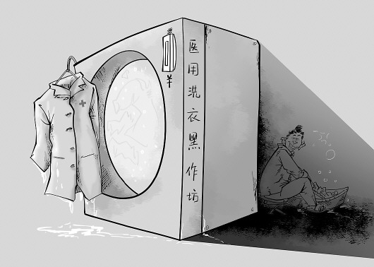 没有消毒设备,手术衣和病号服装直接堆在地上……“新华视点”记者近日调查发现,沈阳十余家医院的医用织物都在一家“黑作坊式”的洗衣厂进行清洗。专家表示,医用织物外包洗涤,无人监管,在全国带有一定普遍性。(3月26日新华网) 漫画/曹一