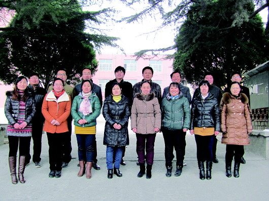 腰关中学部分夫妻教师合影。本报记者 程凌润 摄