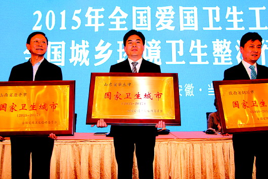 3月24日,在安徽马鞍山市当涂县召开的全国爱国卫生工作会议暨全国城乡环境卫生整洁行动现场会上,章丘市获得国家卫生城市称号。章丘市市委副书记、市长刘天东到会为章丘市领取荣誉牌。