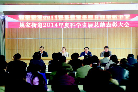 会上,姚家街道党工委副书记、办事处主任李笃来介绍,2014年,在历下区委、区政府的坚强领导下,姚家全办上下立足实际,紧紧围绕建设繁荣文明首善之区的奋斗目标和区委“一二三四五”的工作思路,以“抢先争优看姚家,首善之区创一流”为目标,埋头苦干,奋力争先,全办经济和社会各项事业取得了显著成绩,经济实力稳中有升,基层政权建设扎实推进,确保了辖区安全稳定,环境面貌显著改善,反腐倡廉常抓不懈,被区委、区政府授予“科学发展一等奖”荣誉称号。