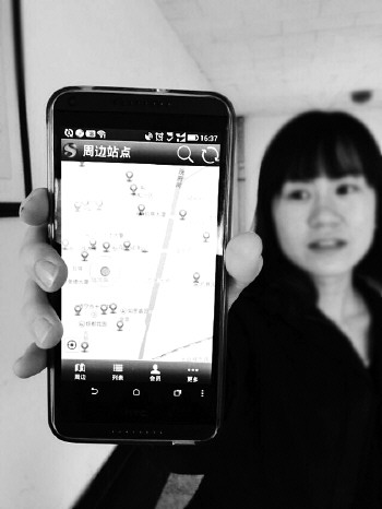 26日,市民高女士来到位于机电二路的公共自行车管理服务中心办理借车卡。当工作人员告知高女士可用手机随时查看站点分布后,她打开微信关注“中城永安”的微信公众号,并在“绿动中国”一栏点击“APP下载”,将名为“我的公共自行车”客户端安装进手机。打开图标,手机屏幕出现城区公共自行车站点分布的电子地图,315处自行车站点位置一目了然。