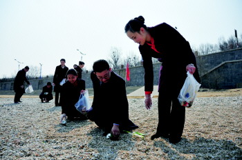 3月26日,东山宾馆十几名职工来到月亮湾海边,清理了长达几千米的沙滩和沿海路面,为沙滩“美容”,工作人员称这也是为城市文明尽一份自己的力量。