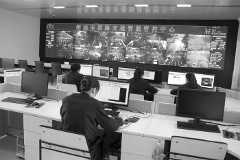 招远市道路交通智能管控中心 本报记者 王晏坤 摄