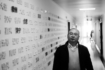 冷蓝字体色调与白色空间的留白,是人们对计算机最初的色彩印象,曹成坤在德州经济技术开发区的办公区,就是这种色调。