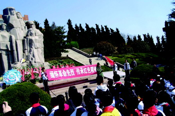 26日,学生在青岛市革命烈士纪念馆举行主题教育活动。