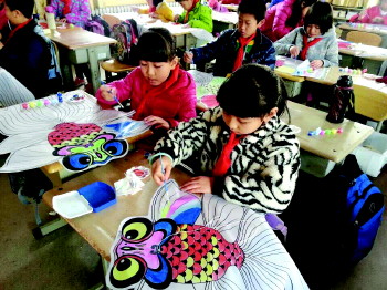 日前,福林小学开展了一项让孩子们兴奋的活动——手绘风筝、放风筝。美术老师组织学生动手绘制风筝图案。同学们开动脑筋,运用鲜艳的色彩描绘出一个个鲜明的图案,有蜻蜓、蝴蝶、老鹰、金鱼……随后,同学们到操场上将亲手绘制的风筝放飞。