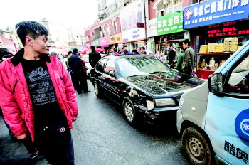 “这辆车是在鞍山三路撞上我的车逃逸被我追到这儿的。”白色大众车主王先生告诉记者,下午2:50,他停在鞍山三路路边的车被黑色尼桑撞上了,王先生正准备去理论,谁料司机驾车就逃,于是王先生便开着车追了上来。一路上,尼桑车先是撞了一辆金色英朗,在抚顺路又撞上一辆出租车,一连闯了几个红灯后,终于在人民一路上撞了金杯面包及五菱面包,最后被大众车堵住。结果车主下车就逃,众人追了两个路口没有追上。