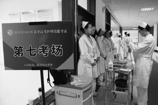 3月22日,考生陆续来到滨州职业学院,参加山东省2015年春季高考“护理”专业类别技能考试,本次考试时间为3月23日—27日,历时五天,这是继去年承办技能考试以来滨州职业学院第二次组织同类技能考试。山东省春季高考分“知识”和“技能”两部分分别组织实施,今年护理类专业技能考试项目为“密闭式静脉输液”。