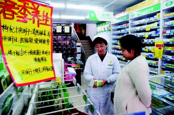 漱玉平民大药房的工作人员正在给市民介绍春季养生的小方法。 实习生 李洋 摄.