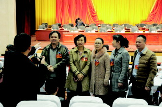 3月26日上午,中国人民政治协商会议第九届枣庄市委员会第四次会议历时三天半,圆满完成了各项议程,在新城会展中心胜利闭幕。大会休会期间,政协委员们进行合影留念。 本报记者 袁鹏 摄影报道