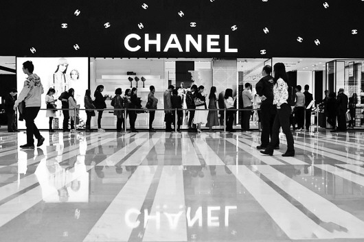众多顾客在香奈儿专卖店外排队等待进店购物。(资料片)