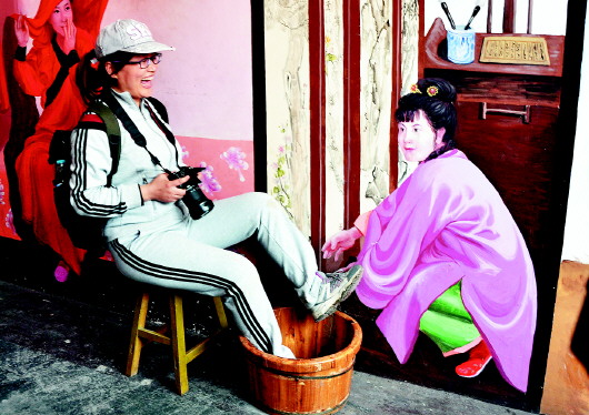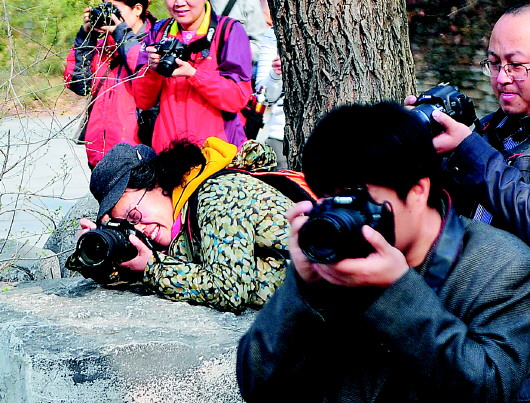 济南九顶塔中华民族欢乐园是本报“拍课堂”挂牌成立的第四个摄影创作实践基地,春天的骄阳在这山间乐园处处撒下了欢快的种子。半山瀑布飞流直下,随风舞动的花枝在向学员们的镜头招手。学员们拍摄劲头儿十足,为了拍出河边垂柳的倒影,学员李青将脸几乎贴在了地面的石头上。学员们拍得很认真,本报摄影记者也在现场指导着他们各种拍摄技巧。“刚开始拿到相机时,上面的功能键全都不认识。”学员高华鑫边拍边说,“现在不但功能键熟悉了,感觉拍片也越来越有感觉了。”