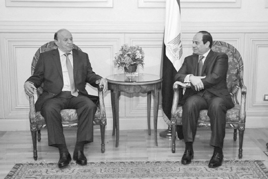 28日,也门总统哈迪(左)和埃及总统塞西会面。