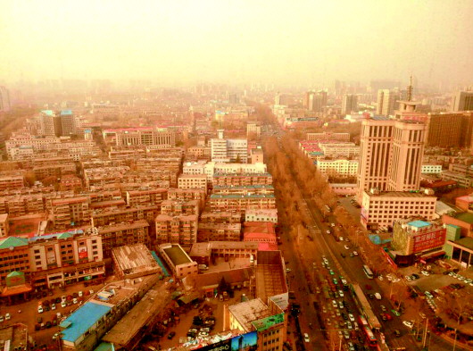 29日上午,扬沙天气笼罩泉城,天空一片灰黄。当日,省城连续12个小时空气质量指数“爆表”,主要污染物为大颗粒PM10,来自新疆、内蒙古等地。