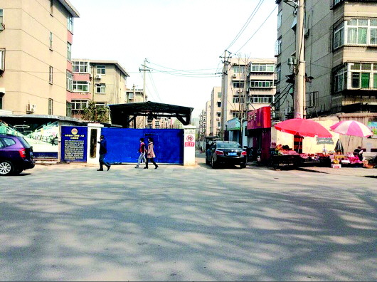 益寿路人防工程施工现场,进出小区道路被堵住一半。 本报记者 王皇 实习生 李粟 摄