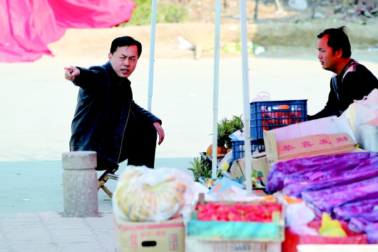 药山派出所副所长宋超在毒贩住处附近走访调查。