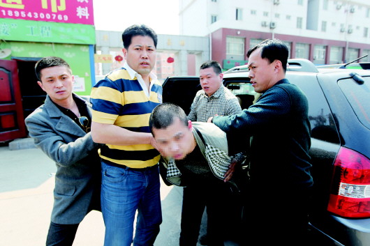 就在黑衣男子打开车门探身放菜的瞬间,随着一个急刹车,民警驾车堵住了黑色“途胜”的车尾,切断其逃跑路线,与此同时,侯文强与其他民警从尚未停稳的车内跳下,与小区内守候的民警同时冲到了黑色“途胜”车旁,拉开后排两个车门,迅速将正在往后车座放菜的黑衣男子擒获!经过询问,黑衣男子正是张某!