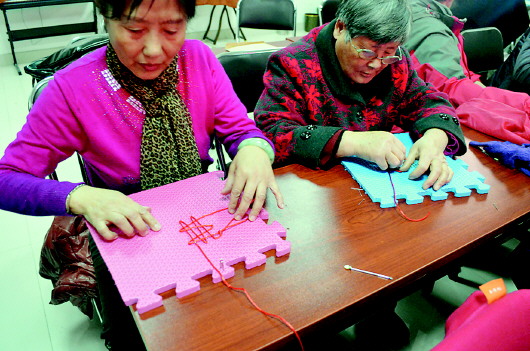 居民们认真学习中国结的编制。通讯员 李雯 摄