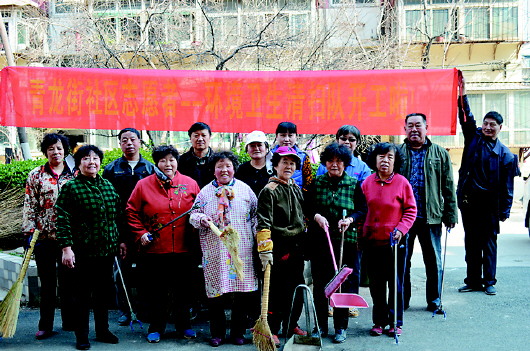 为密切党员与社区居委会的联系,3月26日,青龙街社区党支部号召党员志愿者环境卫生服务队开工了。党员志愿者们首先对青后一区4号楼、5号楼院进行了扫除。志愿者有的从绿化带中捡废纸、塑料袋等垃圾,有的用扫帚清理楼道卫生死角,有的修剪绿化带多余树枝,大家热情高涨,以劳动为荣,乐在其中。最后,居委会还找来了园林用的洒水车对院内绿化带进行了浇灌。