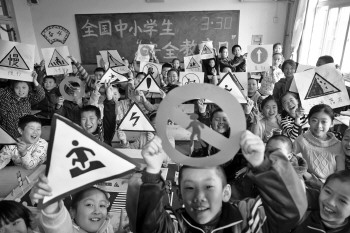 3月30日全国中小学生安全教育日,聊城大学生志愿者在开发区实验小学举办了“学生安全教育进课堂”活动,大学生志愿者通过给小学生讲解交通安全图标的意义,提高小学生的交通安全意识。 本报记者 李军 通讯员 赵玉国 王善鹏 摄