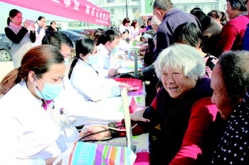 活动现场医务人员为群众免费测量血压。通讯员 张红 摄