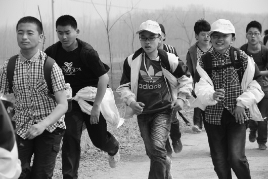 上午10点左右,在走了一个小时之后,一些学生已经显得有些疲惫,但是他们依旧相互鼓励着继续向目的地走去。