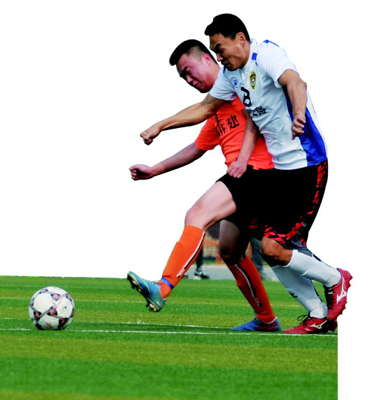 联赛第一轮,滨州住建与滨州公路的队员奋力争抢。 本报记者 李运恒 摄
